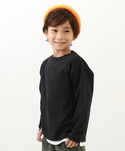 すっきり大人シルエットの『無地 ポケット付き クルーネック 長袖Tシャツ』ベーシックながらもゆるっとしたBOXシルエットでこなれ感を演出。