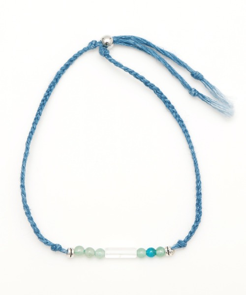 誕生石を藍染紐で組みあげた願い紐、足飾り。日々の暮らしを願いと共に。