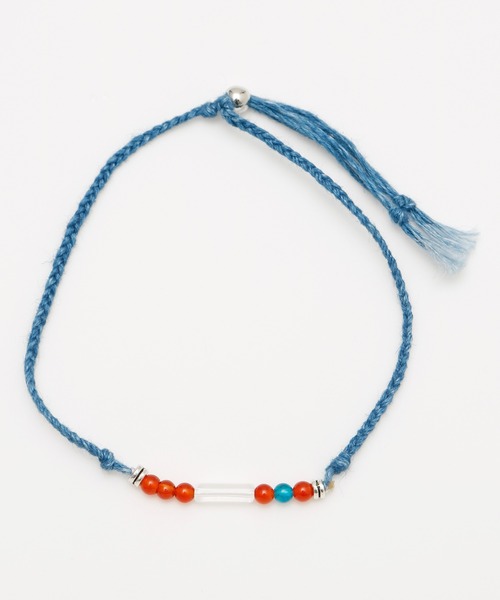 誕生石を藍染紐で組みあげた願い紐、足飾り。日々の暮らしを願いと共に。