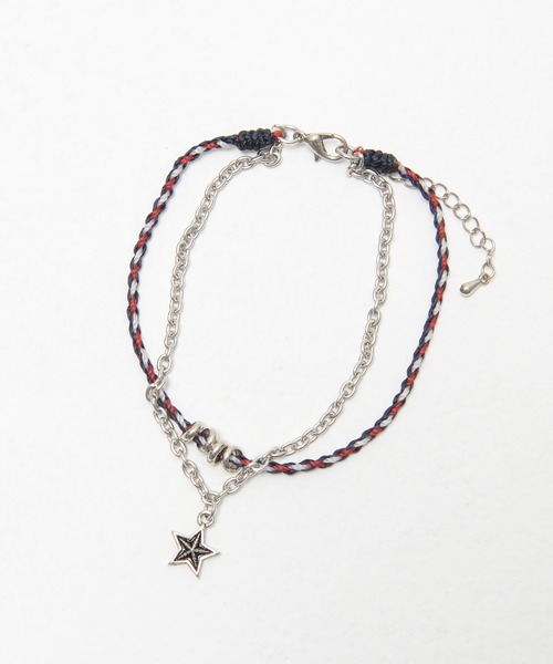 シンプルなスターチャームデザインでワックスコードとチェーンの2連アンクレット。