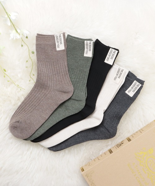【5色組】【5足セット】タグデザインクルーソックス