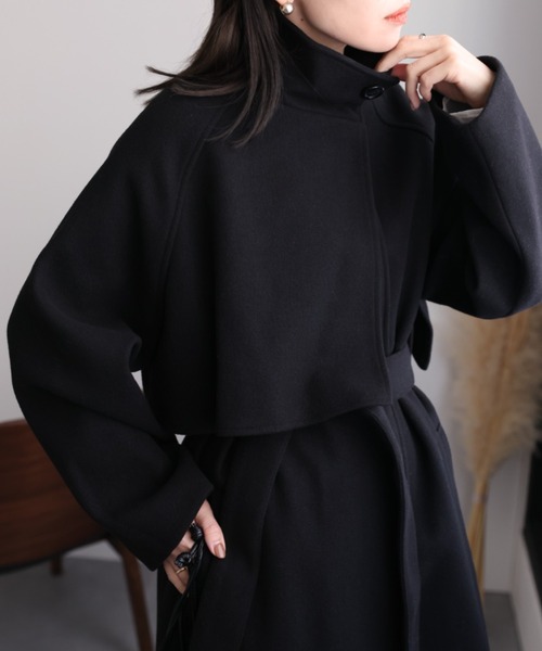 立体感のあるスタンドカラーが魅力的なケープコート