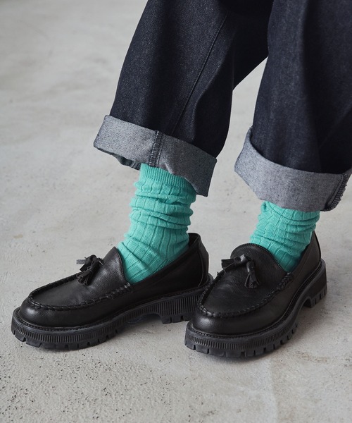 デニムパンツとカラーソックス合わせのカジュアルスタイルからブラウスとスラックス合わせのきれいめスタイルまで、様々なテイストに合わせて履き回しを楽しんでいただけます。