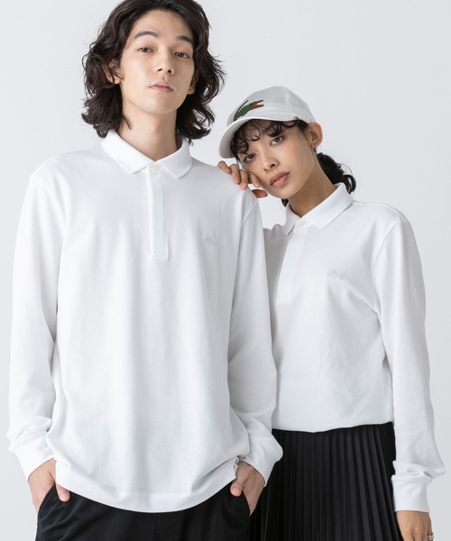 ラコステの定番ロングスリーブポロをモダンにアレンジラコステ定番の長袖ポロシャツに、フロントの比翼仕立てと左胸の同色クロックエンブレムでモダンなアレンジを加えた一枚。トップボタンだけ覗かせた上品なルックスに仕上げました。大人らしい着こなしを演出する洗練度高めの一枚は、色違いで揃えればシティライクなペアルックも楽しめます。