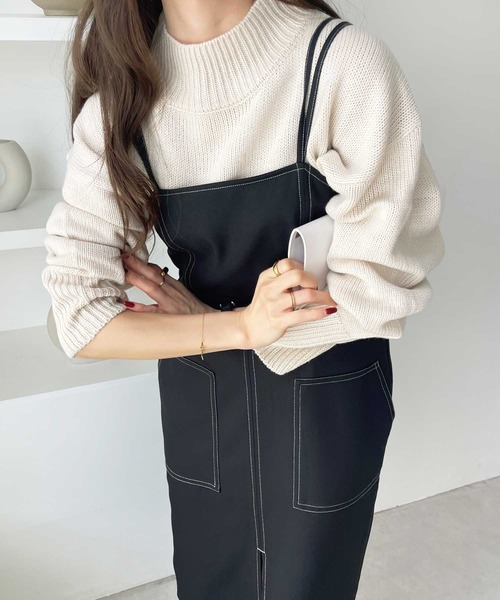 華奢見せを叶えるタイトシルエットがレディライクな雰囲気のキャミワンピース。