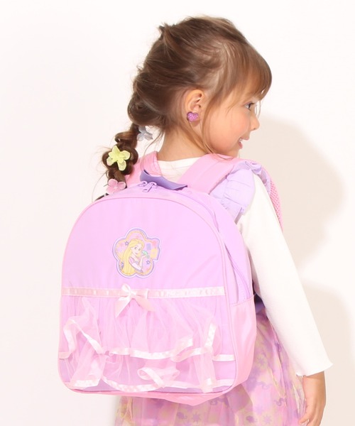 「ベル・ラプンツェル・アリエル・アナとエルサ」のワッペンと華やかなレースデザインがとてもガーリーで、お姫様好きの女の子にピッタリのアイテム♪