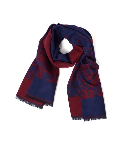 カモフラージュ柄が細かく分解されて消えていく様をジャカード織りで表現したストール。