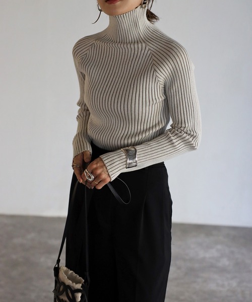 ハイネックデザインなので、ノーカラーのアウターとも相性抜群です。