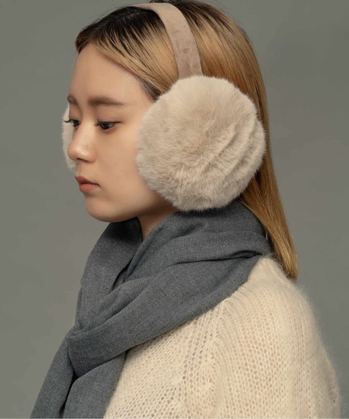 寒い日に着けたいファーたっぷりのイヤーマフ。