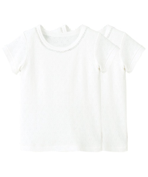 【仕様】衿ぐりのピコットがかわいい2枚組のセットです。ボディにやさしくフィットするシンプル肌着は、インナー使いで重宝するだけでなく、お部屋のなかで1枚で着てもさまになるように仕上げました。繰り返しのお洗濯でも型くずれしにくく、使用するたびに満足度がUPする一品です。