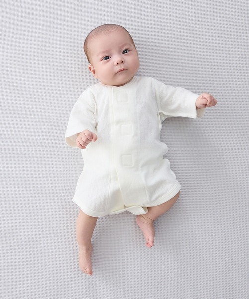 【仕様】人気のワンタッチ短肌着に新しい機能をプラス!股下ボタンで肌着のずりあがりを防止し、赤ちゃんのおなかを冷えから守ります。