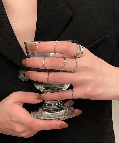 人気のねじれリングなどデザイン性の高い7つのリングをセットに。