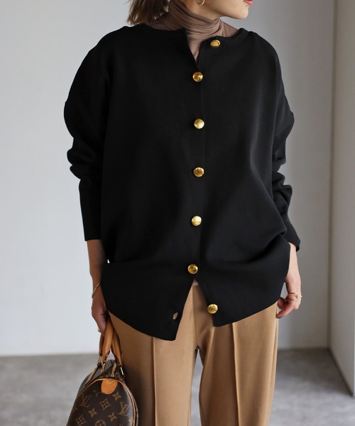 カーディガン/金ボタン/ニットカーディガン/羽織/ダンボール/ミドル丈/体型カバー/高見え/きれいめ/大人カジュアル/カジュアル