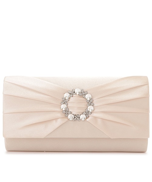 艶やかなサテン生地にビジューのアクセントが効いたパーティーバッグ