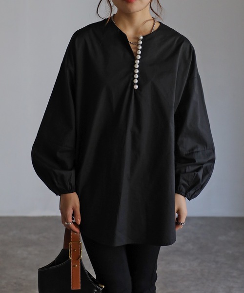 オーバーシャツ/ブラウス/シンプルコーデ/オーバーサイズ/Vネック/淡色パール/オフィスコーデ/オフィスカジュアル/韓国/秋服