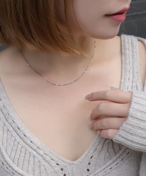 光の反射でキラキラと輝く細目のグリッターチェーンネックレス。デイリーに身に付けられ、様々なファッションジャンルに相性抜群。