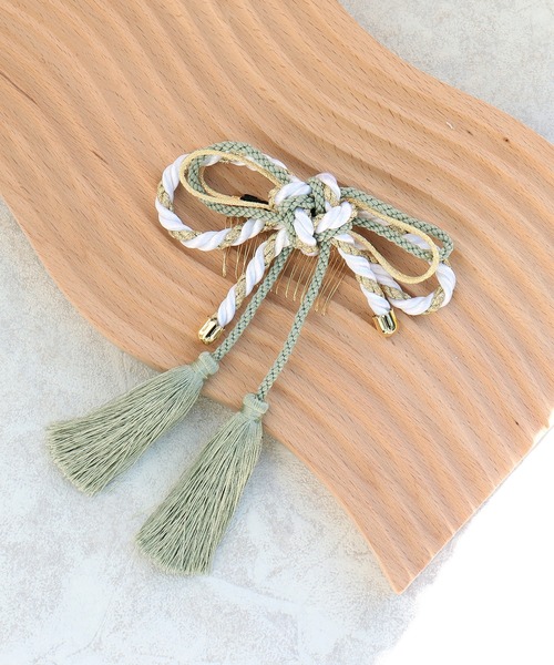ヘアアクセ 房 水引 金 大正ロマン レトロ くすみカラー ニュアンスカラー 振袖 袴 成人式 卒業式 記念撮影 写真 ヘアアレンジ オフホワイト グリーン ゴールド 日本製 国産