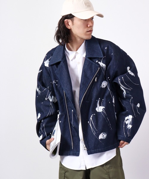 ペイントデザインが目を惹く!【デニムライダースジャケット】