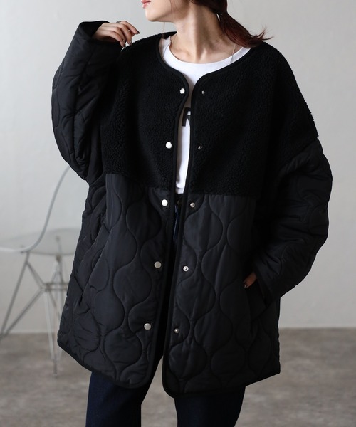 ・ノーカラーで首回りもスッキリするので、ストールやタートルニットとのコーディネートにも最適です◎