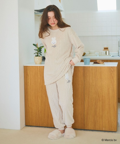 ・【Miffy/ミッフィー】もこもこケーブル編みフリースルームウェアトップス(品番:653124)
