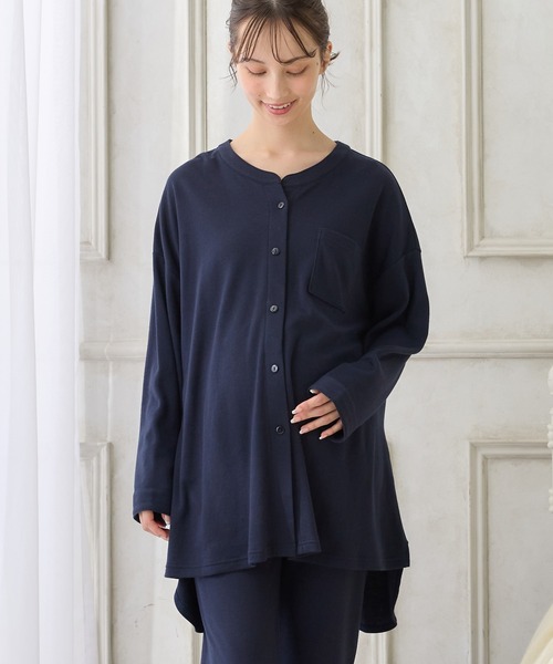ふんわりもっちり素材の心地よいパジャマ。グレーのネコプリントと無地の豊富なカラーバリエーションも魅力。