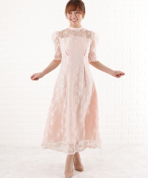繊細な花柄レースでフェミニンムード漂うワンピースドレス