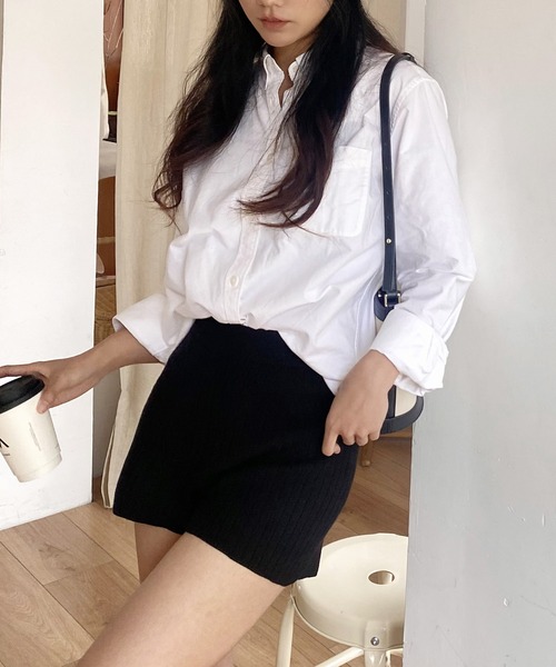 リブ編みニットで着やせ効果を最大限に発揮します。