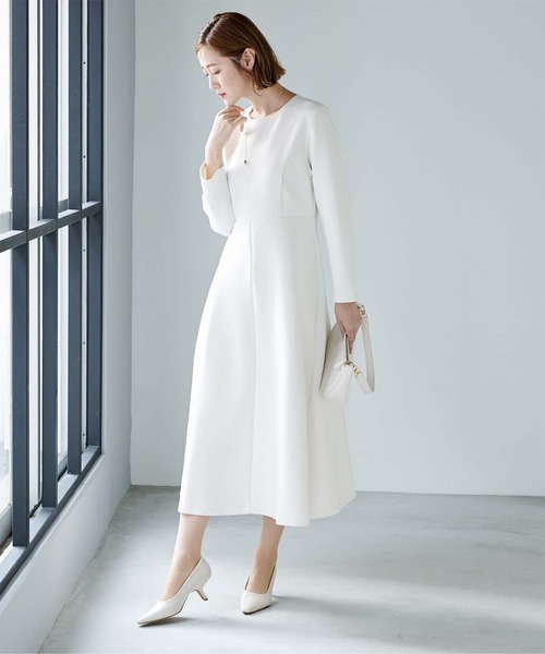 ハリ感のあるボンディング素材で綺麗なフレアシルエットが作り出されるワンピース。