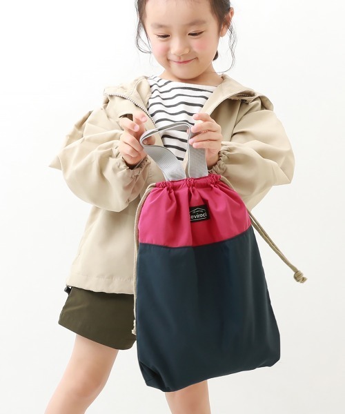 持ち運びに便利な『バイカラー 持ち手付き巾着袋』低学年から高学年、中高生まで幅広く使えるシンプルなデザインが魅力。