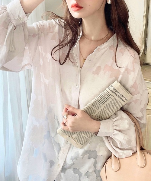 ・繊細な透け感が、シックで女性らしい雰囲気をもつフラワージャガードシャツ。