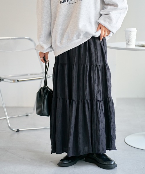 DISCOAT ONLINE LIMITED ITEM大人気のティアードスカートに新型が登場!・程よい光沢感のあるサテン素材で、上品な雰囲気を演出