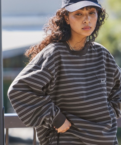 シンプルでありながら、一枚でスタイリッシュに仕上がるビックシルエットボーダーロングTシャツ!