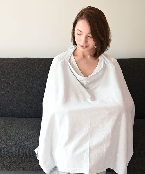 ミルクタイムをホッとおしゃれに毎日の赤ちゃんのお世話で欠かせないのが授乳タイム。お出かけ先などで、周りから見えないよう体をカバーできる授乳ケープがあれば、場所を選ばずやってくる突然のミルクタイムもパッと羽織るだけ。赤ちゃんも安心のスペースができ、おうちにいる時のようにリラックスして授乳できますね。天竺ニットとガーゼの2重構造なので透け感もありません。