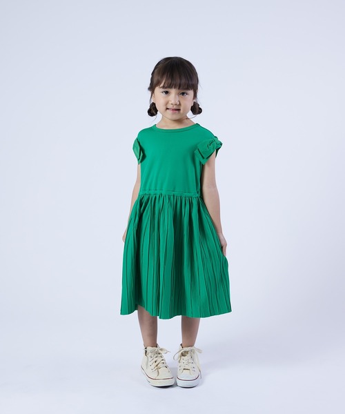 肩のリボンとウェーブプリーツが今っぽいワンピース
