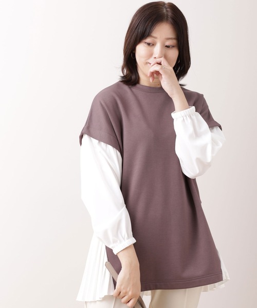 柔らかな着心地で暖かみのある素材にブラウス生地を切り替えて、