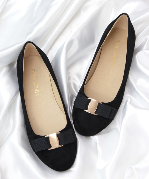 フラットリボンパンプス[素材]●アッパーにはスエード素材、スムース素材を使用しており、質感がよく足に馴染みやすくなっております。