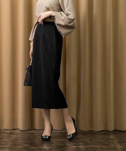 シンプルながらもシルエットが美しく、上品な着こなしを叶える一枚。オンオフ問わず幅広いシーンで活躍する、頼れるタイトスカートです。