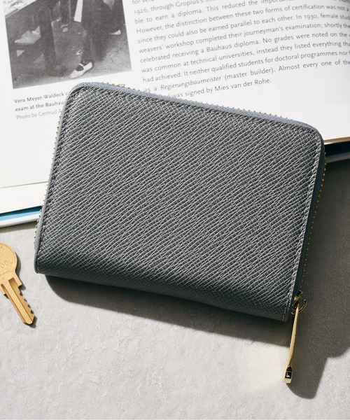 ・サフィアーノレザー風の型押しで高級感あふれる、手のひらサイズのウォレット。