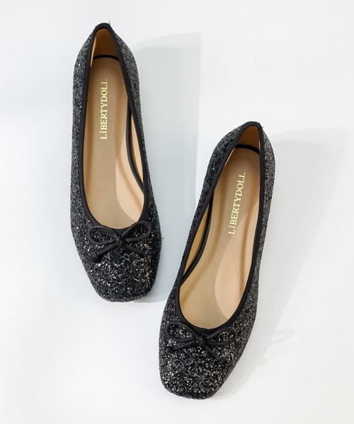 オーバーすぎないスクエアトゥが上品な印象を与える、きれいめにも取り入れやすいフラットバレエパンプス。