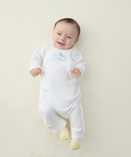 【仕様】着くずれしにくいパンツ型ウェアはチャイルドシートなどのベルトもスッキリ留めやすい!ワンタッチテープの仕様でサッとお着替え出来るので、おむつ替えがカンタン。ワンタッチ短肌着を入れて重ねてお着替えすれば、さらにカンタン!忙しい毎日でも赤ちゃんとの時間が長く取れるようにおむつ替えが時間短縮で赤ちゃんもママも笑顔に。