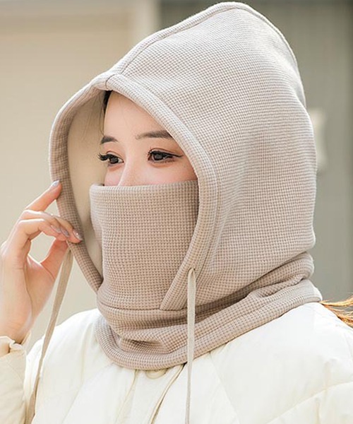 口元を塞がないフードウォーマー(口部分の布を内側に織り込む)