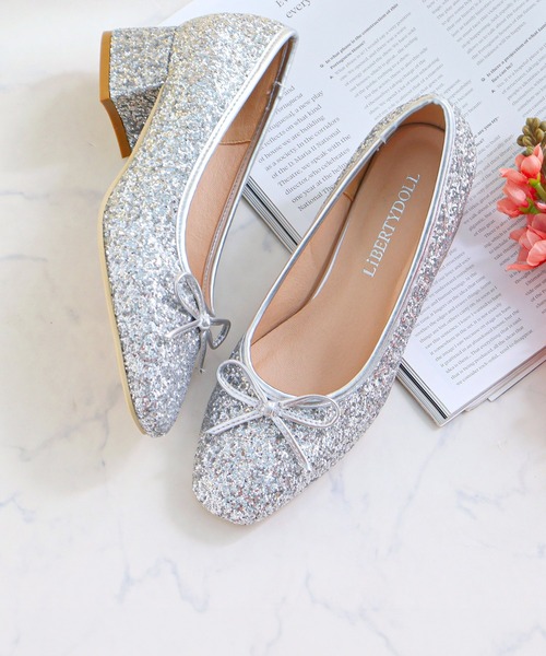 リボンパンプス/オケージョン/結婚式二次会/ビジネス/オフィスカジュアル/ベルグラ/マニッシュ/大人カジュアル/バレエコア/メタリックカラー/グリッター/シルバーパンプス/仕事/通勤/デイリー/普段使い/