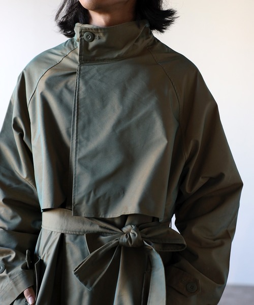 「オーバーサイズ 2WAY スタンドカラー ルーズ トレンチコート タマムシコート<ユニセックス>」
