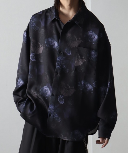 weliseのシャツシリーズ定番として人気の”リッチドレープスムース”生地を使用した長袖総柄シャツ。