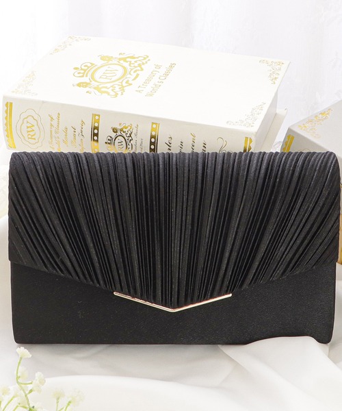 上品な光沢感を放つサテンプリーツのパーティーバッグ