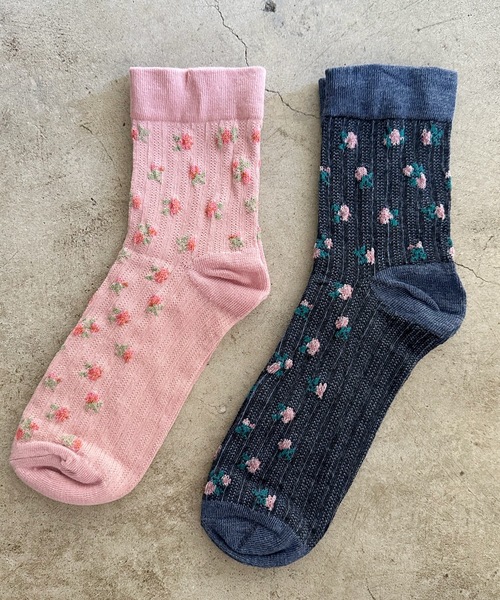 靴下 SZT:フラワー 花柄ソックス 2足セット レディース