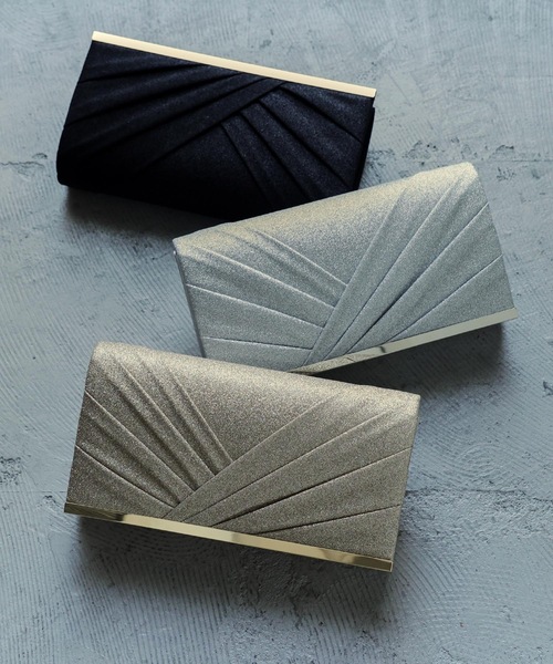 ラメプリーツが煌めく、スクエア型のクラッチバッグ。