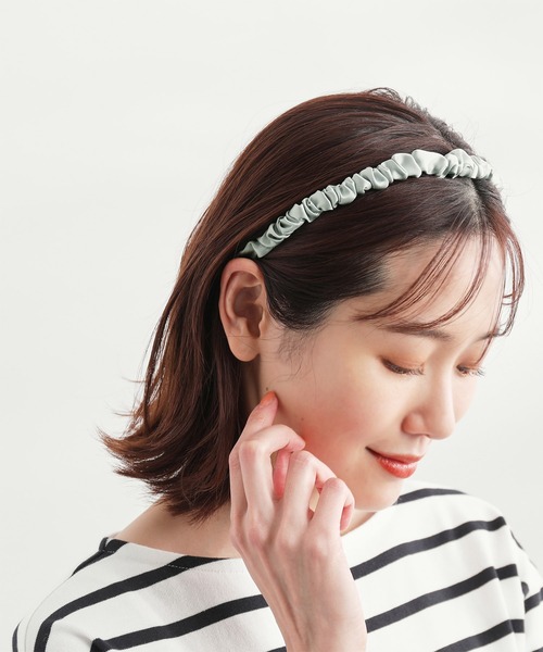 ・細身のラインで取り入れやすいサテンカチューシャ。
