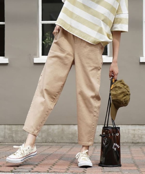 ゆるいのにスッキリ見えるテーパードパンツたっぷりゆとりのあるデザインを裾にかけて細くなるテーパードラインで仕立て、ルーズだけどスッキリ見えが叶うテーパードパンツに。