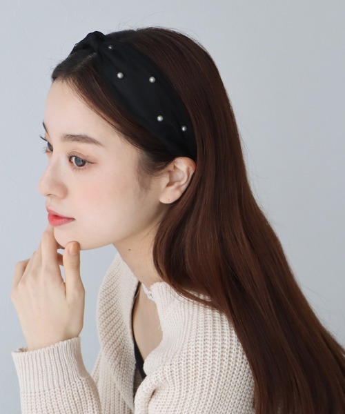チュールにパールをランダムに散りばめた、主役級のヘアアクセサリー。